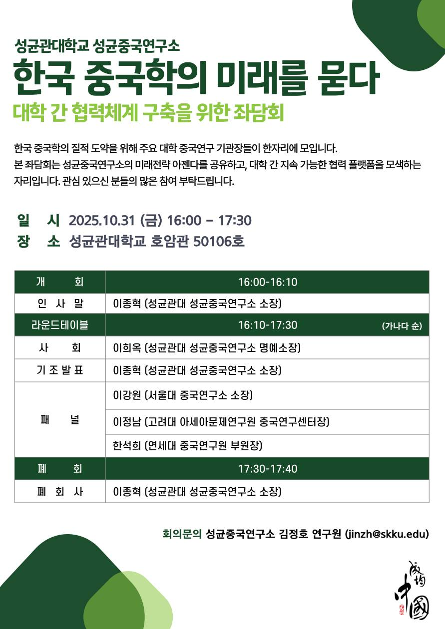 [성균중국연구소] 대학 간 협력체계 구축을 위한 좌담회 안내