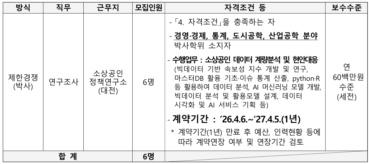 ① 기간제근로자(계약직 4급) – 연구조사(박사) : 6명